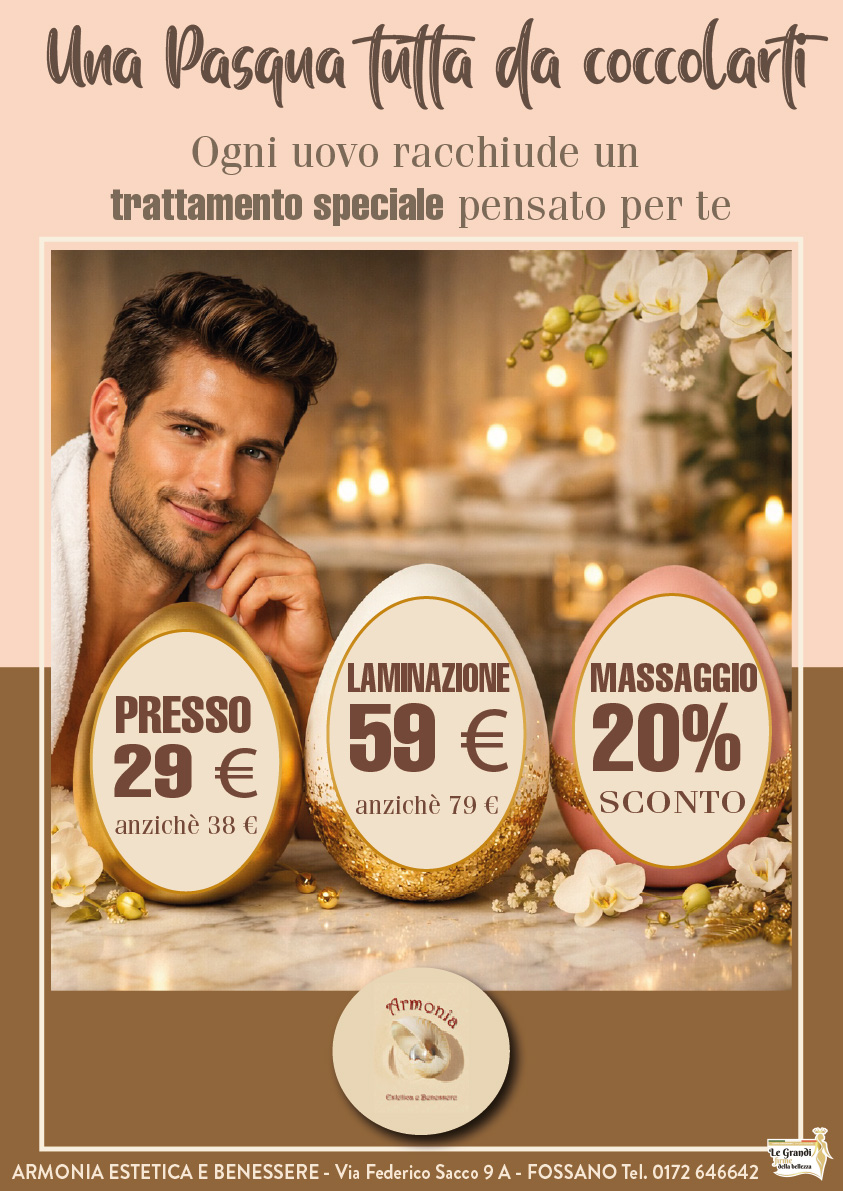 Pasqua è il momento perfetto per rallentare, prendersi una pausa e concedersi qualcosa di bello. E quale occasione migliore per regalarti (o regalare) un momento di vero benessere? Da Armonia Estetica e Benessere abbiamo pensato a un mese di Aprile tutto dedicato alle coccole, con trattamenti speciali racchiusi in una proposta semplice ma irresistibile: